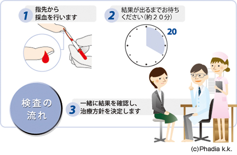 指先からごく少量の血液を採取し、アレルギーの原因となる物質を特定するものです。指先を一瞬チクッと血糖測定等で使用する針で刺すだけなので、小児の患者様でも容易に検査できます。検査キットを用いることで、約20分で代表的な8項目(スギ、ダニ、ブタクサ、イヌ、ネコ等)についてアレルギーを有するかが分かります。ご関心のある患者様はお気軽にご相談下さい。