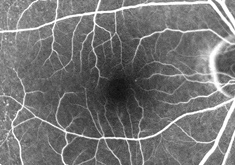 - 蛍光色素を含んだ造影剤を腕の静脈から注射し、眼底カメラで眼底の血管の異常を検査します。新生血管や、新生血管からもれた血液がどこに存在するのかがよくわかります。検査では、必要に応じてフルオレセインとインドシアニングリーンの2種類の造影剤が用いられます。